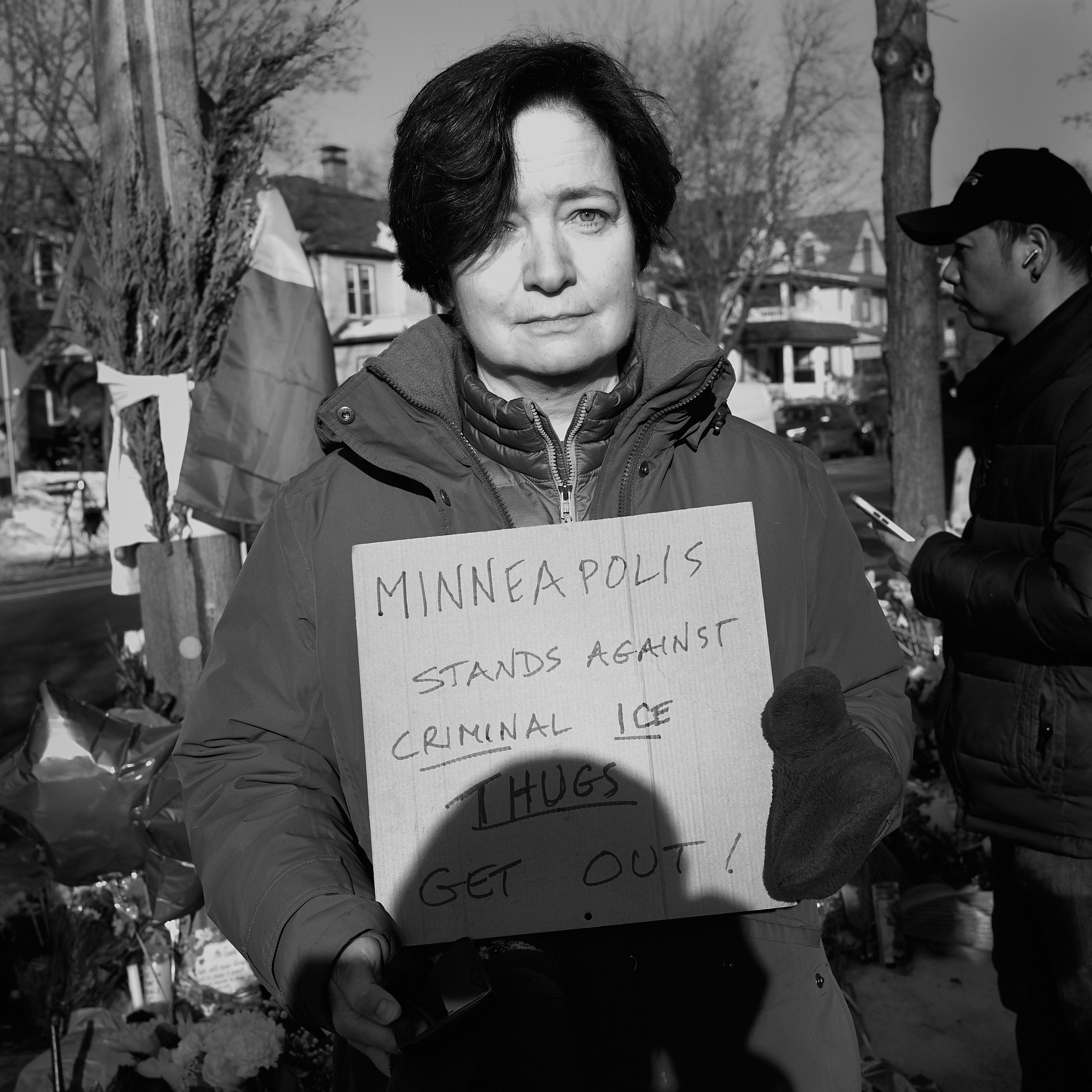 I returned to the site of the ICE shooting at 10 a.m. to witness the moment of silence called for by Governor Walz. The street was quiet, the kind of quiet that settles after something irreversible. People gathered in small groups, standing close against the cold. Some cried openly. Others said nothing at all, looking down at the pavement or past the memorial, as if trying to understand how this corner of Minneapolis had become another place of loss.