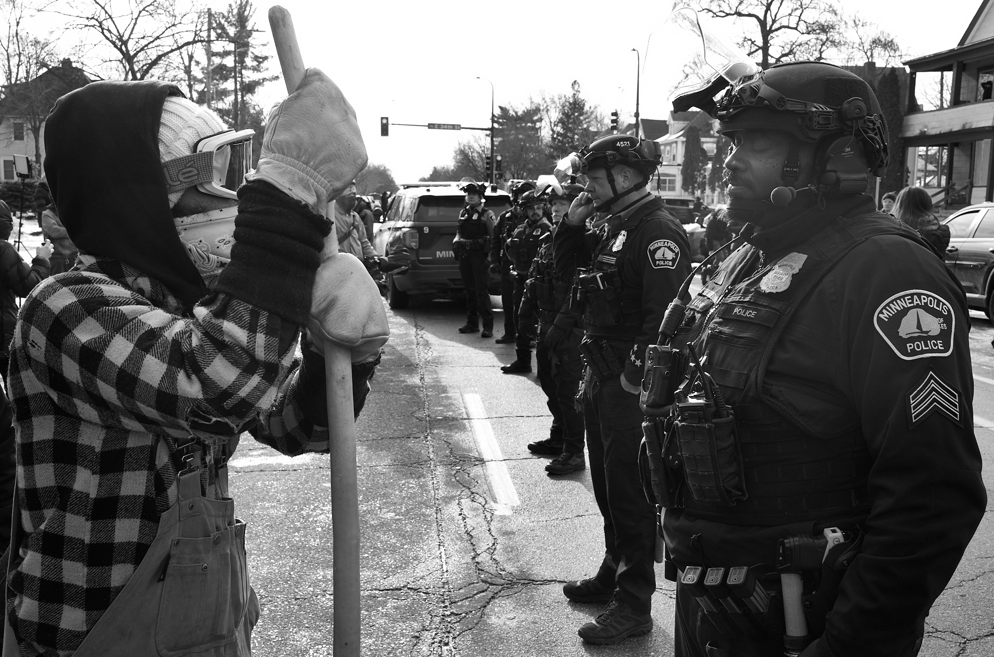 When police arrived, the atmosphere shifted, noticeably. Years of tension and mistrust surfaced. The crowd had grown beyond the narrow sidewalks and into the street. Officers moved to contain everyone to a single lane. For a moment, the situation felt fragile, as if it could tip in either direction.